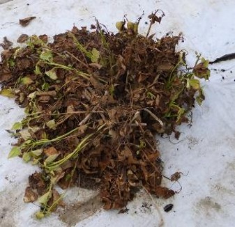 冬の寒さに弱いのでビニールハウスでの栽培です。それでも緑の葉がどんどん少なくなっていきます。とても心配です。念のためいつも通り種芋も植えますが、冬の寒さを乗り越え、6月に葉が茂ってくれることを祈りましょう!